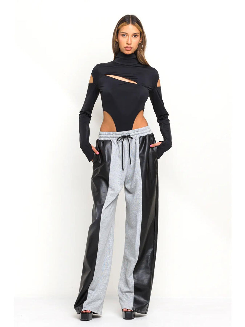 Half and Half Faux Leather Detail Sweatpants