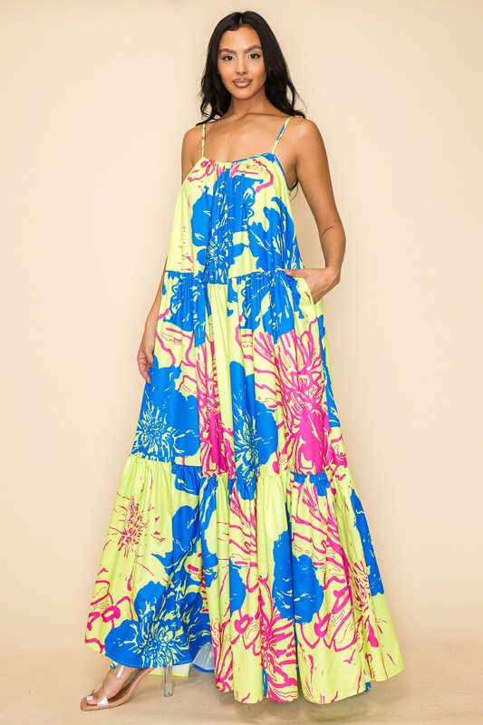 Sleeveless Printed Maxi Dress with Adjustable Straps
