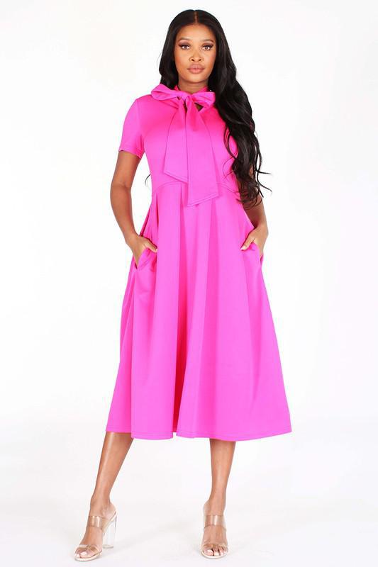 Midi Flare Dress with Necktie