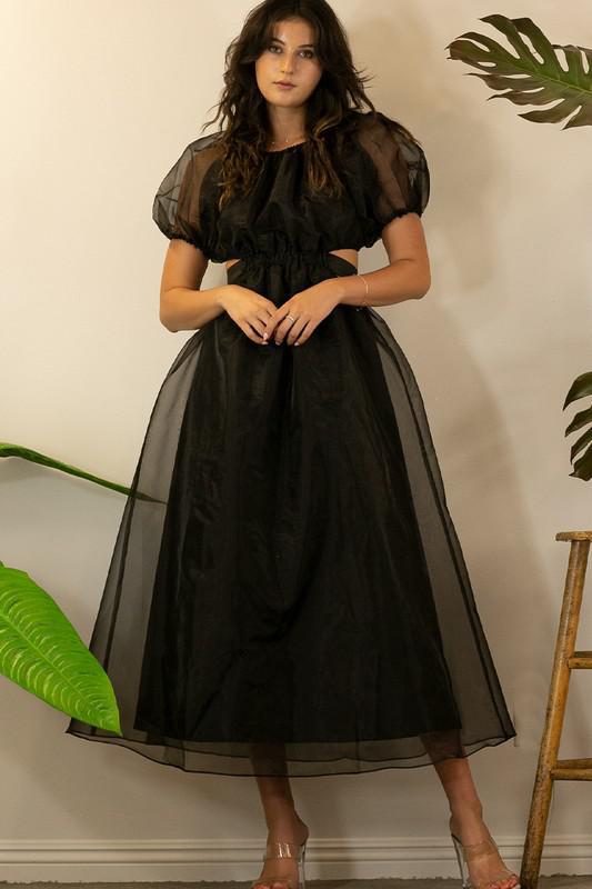 ORGANZA PUFF SLEEVE LONG DRESS