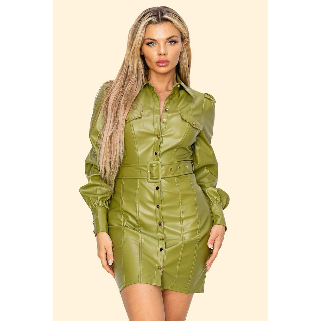 Pu Leather Long Sleeve Mini Dress